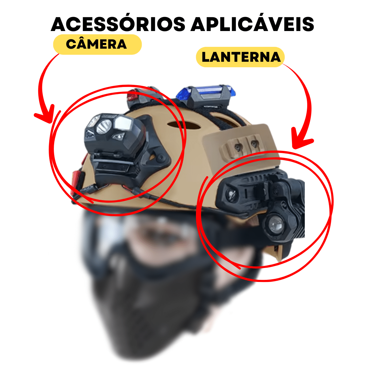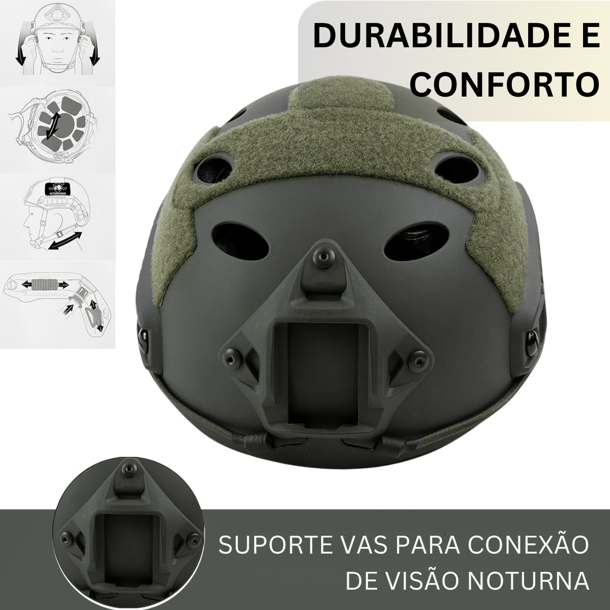 Este capacete é indicado para uso em airsoft, paintball e atividades recreativas.