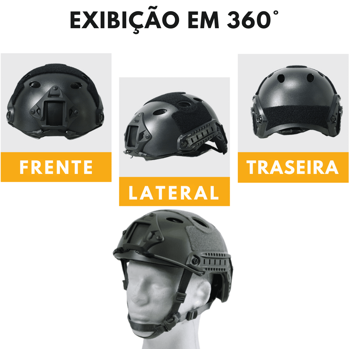 CAPACETE TÁTICO AIRSOFT RÁPIDO – VERSÃO GROSSA PJ BOOIU PRETO, VERDE, CASTANHO – TAMANHO M