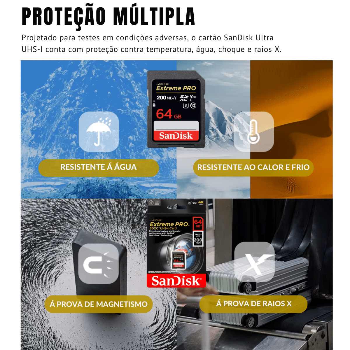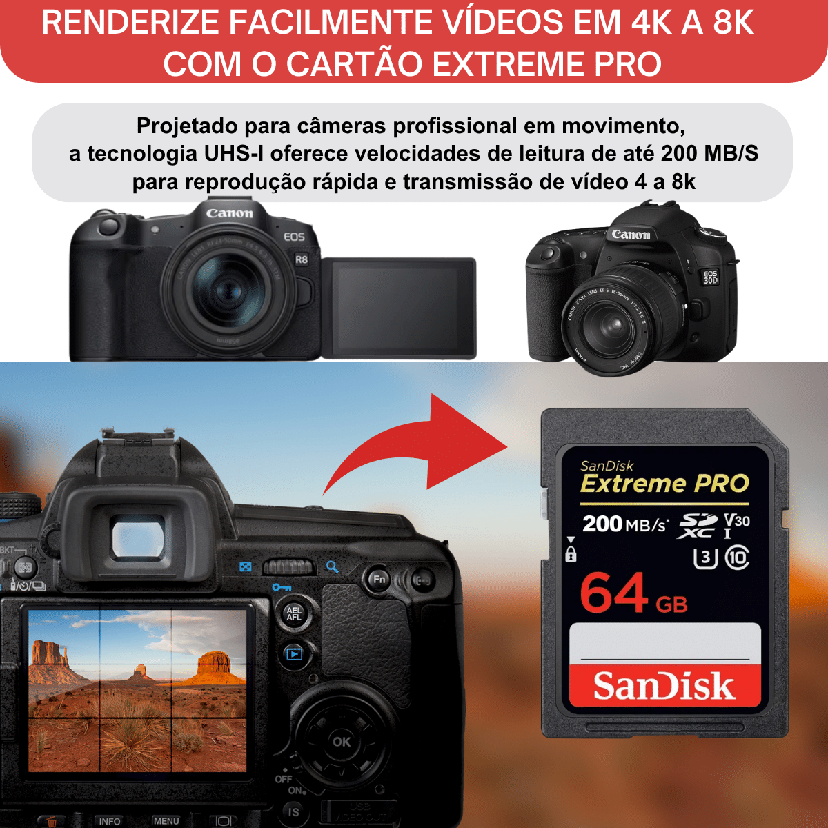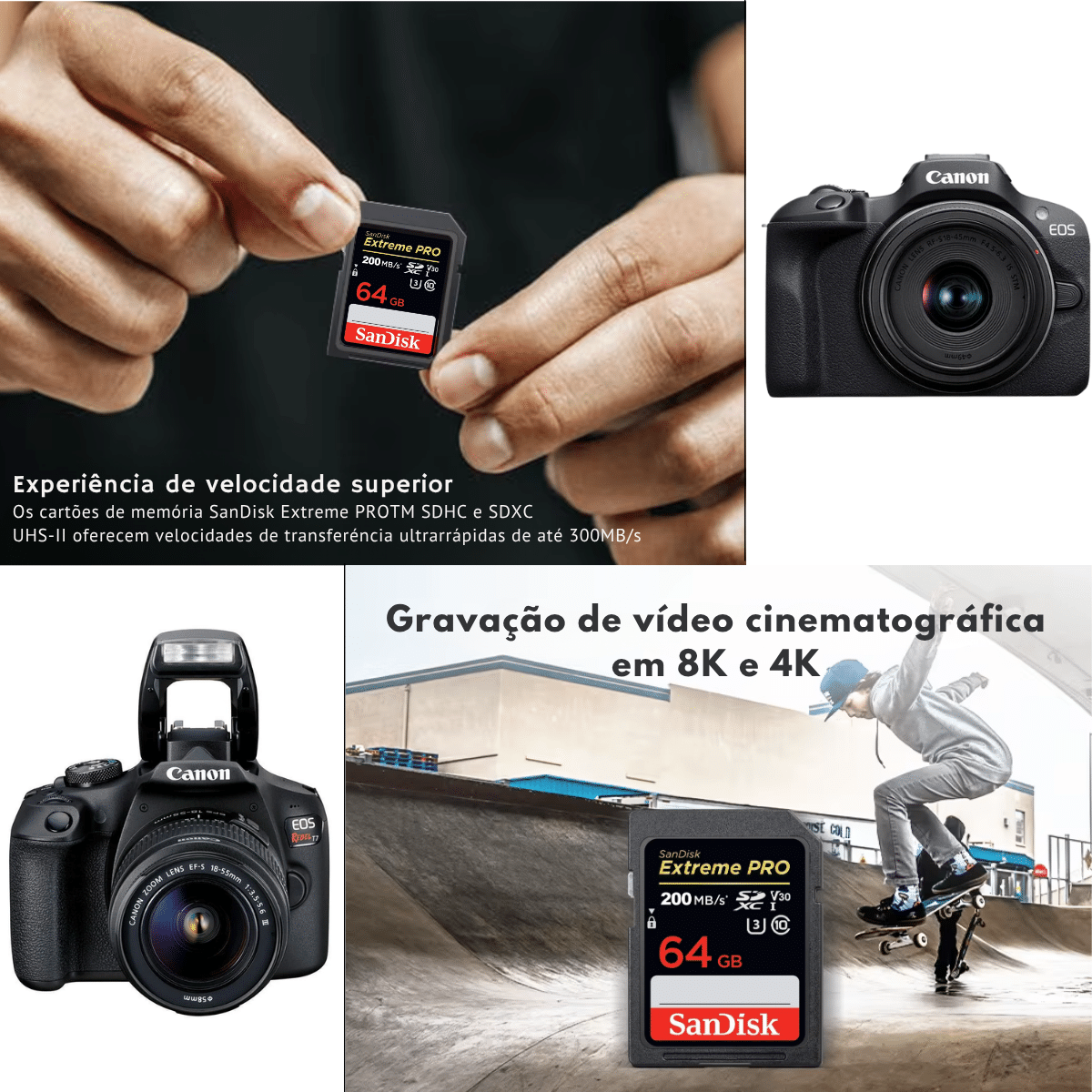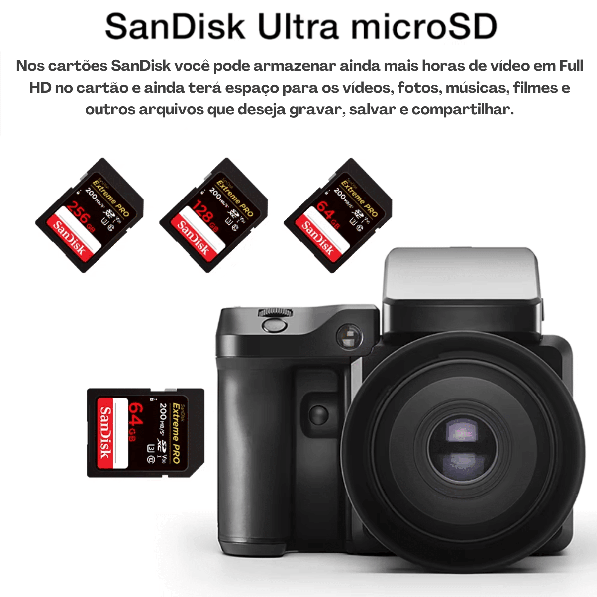 Com os cartões de memória originais SanDisk Extreme PRO, você pode armazenar todos os seus vídeos, fotos e áudios em alta resolução, incluindo 4K UHD, sem se preocupar com desempenho ou falta de espaço!