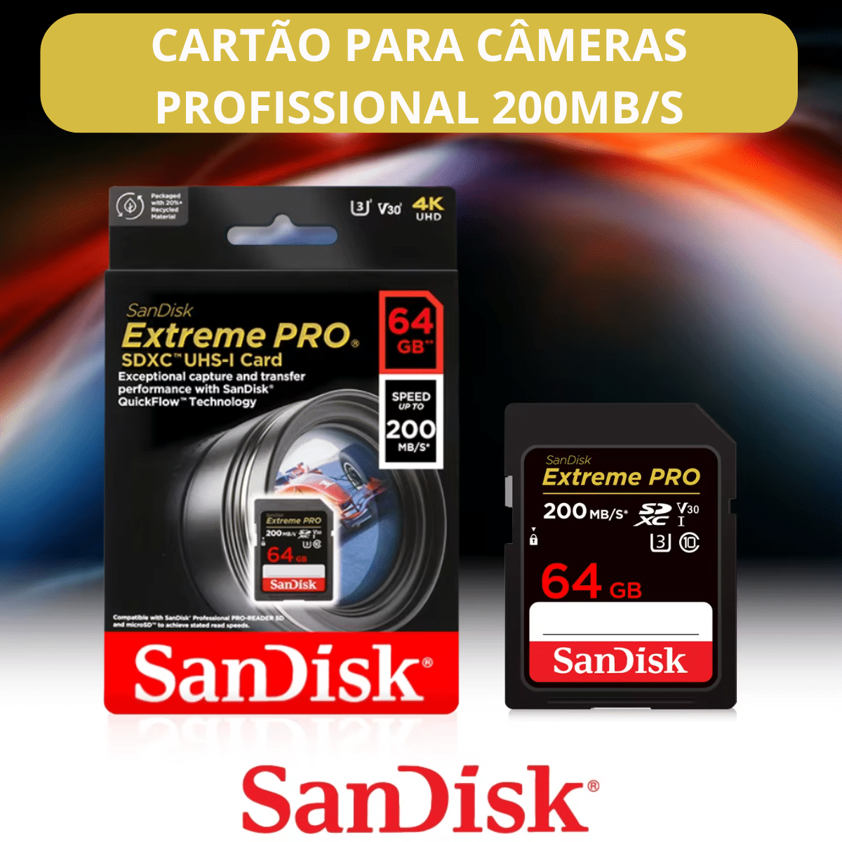 1- Cartão ORIGINAL SanDisk Extreme PRO SDXC 64GB