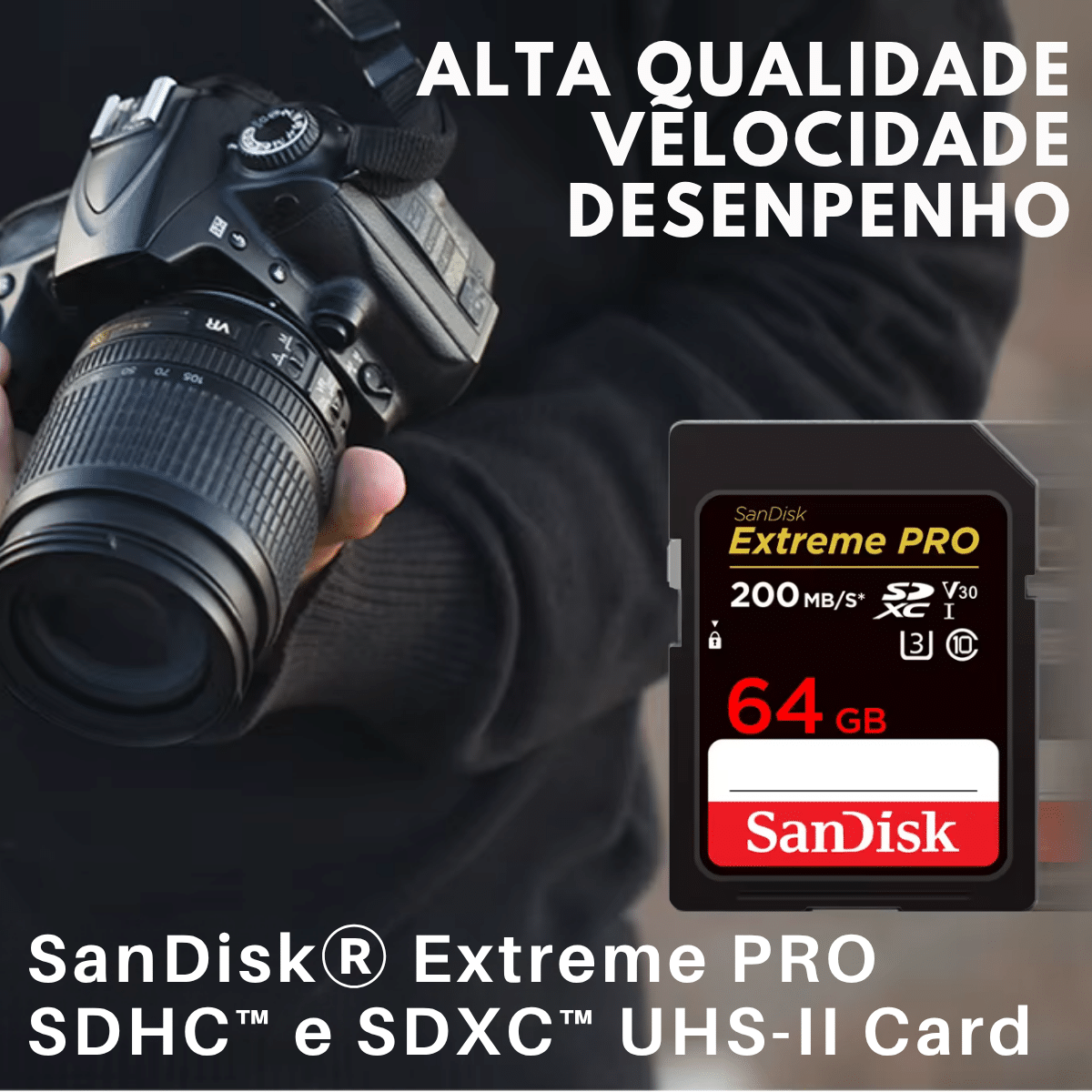 CARTÃO DE MEMÓRIA SanDisk EXTREME PRO SDXC DE 64 GB ARMAZENAR MÍDIAS EM CÂMERAS PROFISSIONAIS,DRONES, TABLETS, MP3/MP4 E OUTROS….