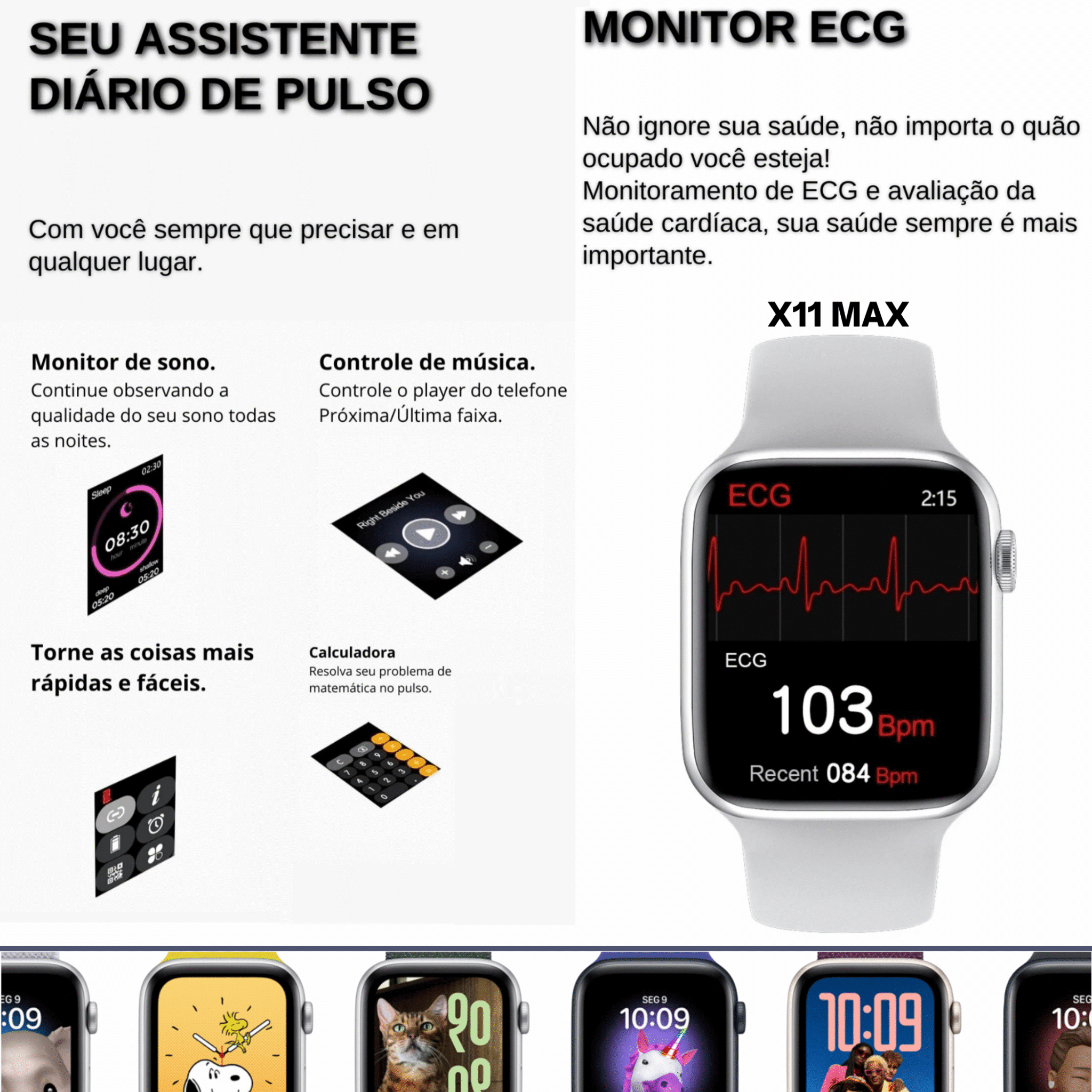 • Monitor de sono: o relógio inteligente liga-o automaticamente das 9h às 9h e registra a duração e a qualidade do sono;